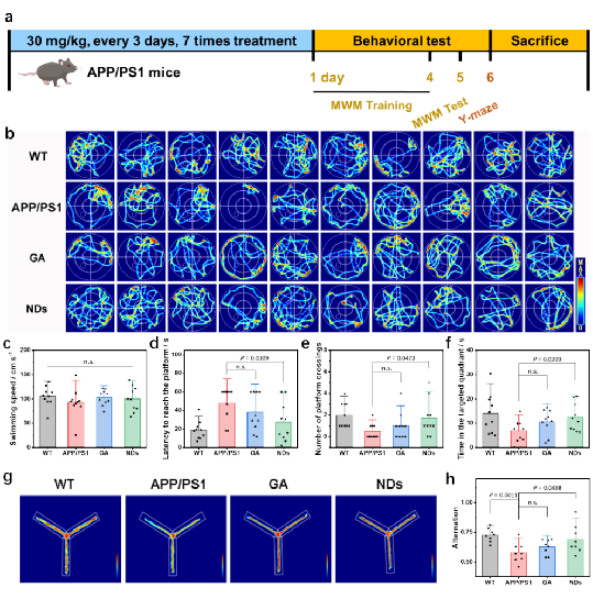 图5天然多酚纳米点在阿尔兹海默症动物模型中的治疗效果