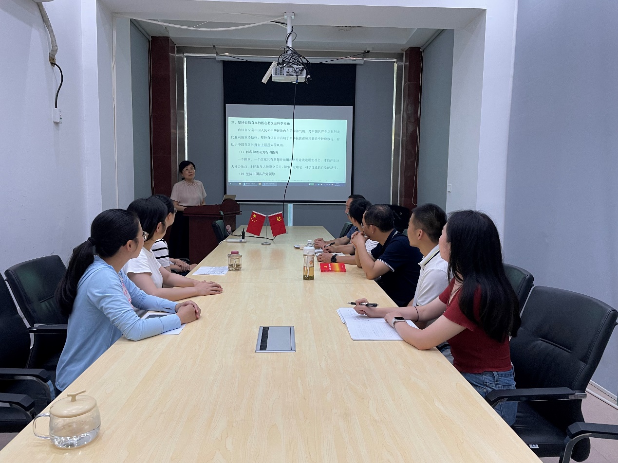 学院教学院长冉蓉教授以《深刻认识和牢牢把握必须坚持自信自立》为题为支部党员同志们讲授了党课。冉蓉教授从自信自立几大维度切入引出自信自立是走好中国式现代化道路的必然选择,同时结合实践讲授了坚持自信自立的内在逻辑、核心要义及科学内涵。
