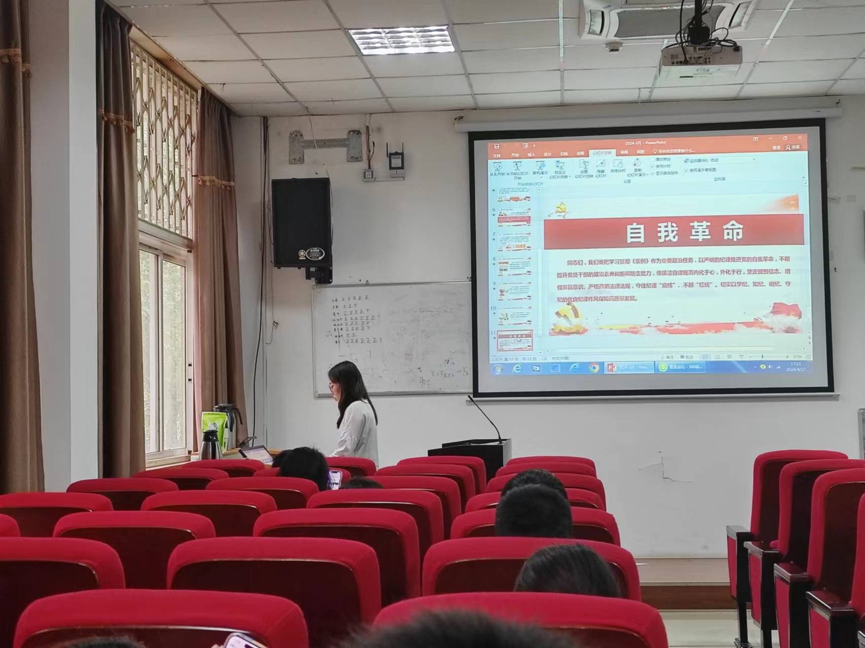 2024年4月26日下午,学院材料学硕士研究生第二党支部在学院附楼207会议室开展“学条例·知敬畏·守底线”主题党课宣讲活动。学习《中国共产党纪律处分条例》了解其重要意义,贯彻习近平总书记关于党纪学习教育的重要指示批示精神。