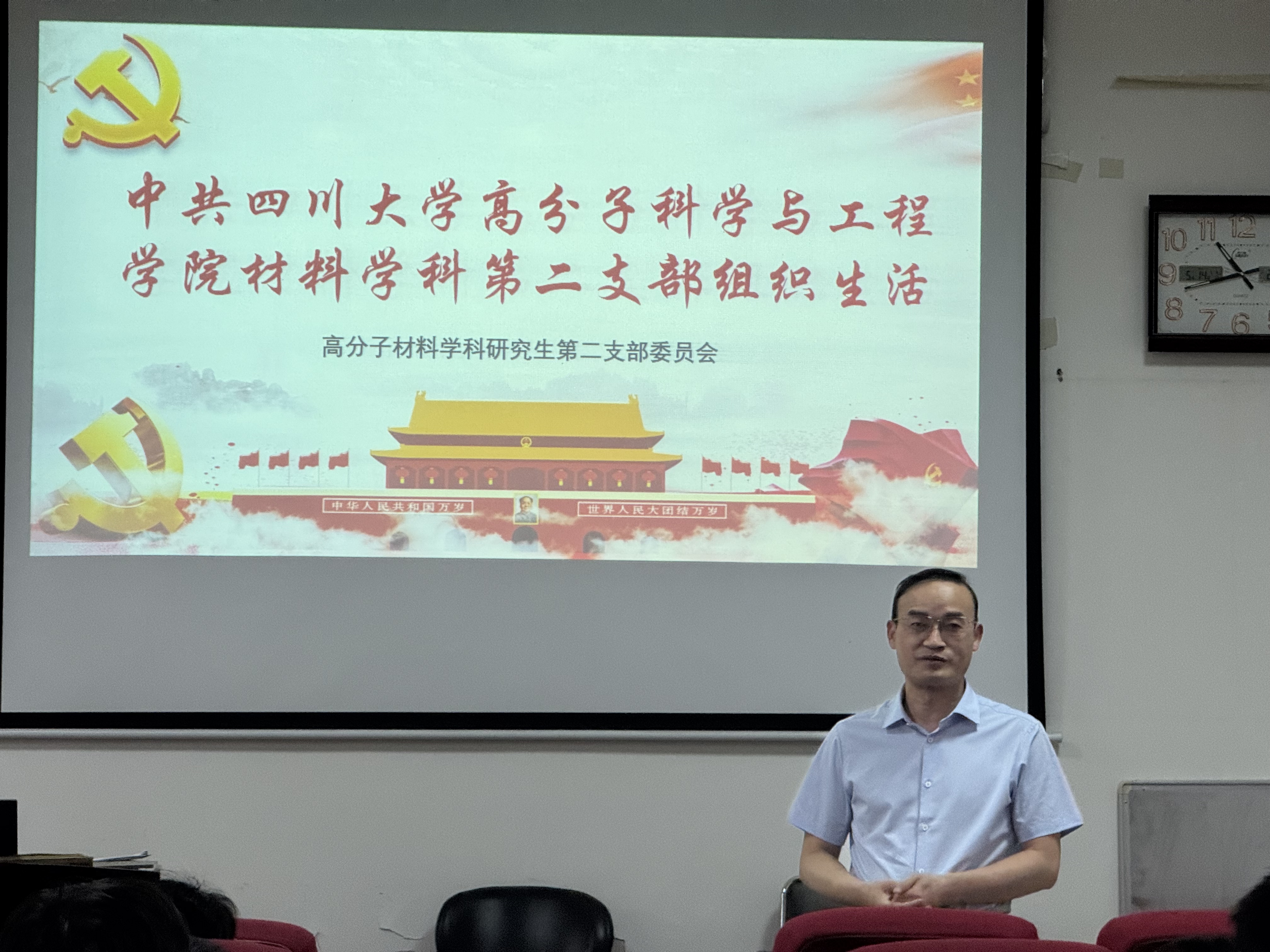 为深入贯彻中央八项规定精神学习教育,提高支部党员政治思想觉悟,5月14日下午,高分子材料学科研究生第二党支部在学院实验楼207会议室召开“砥砺奋发新时代,勇毅前行启新程”党课学习活动。支部书记雷元主持,学院党委书记牟德富出席并指导。
