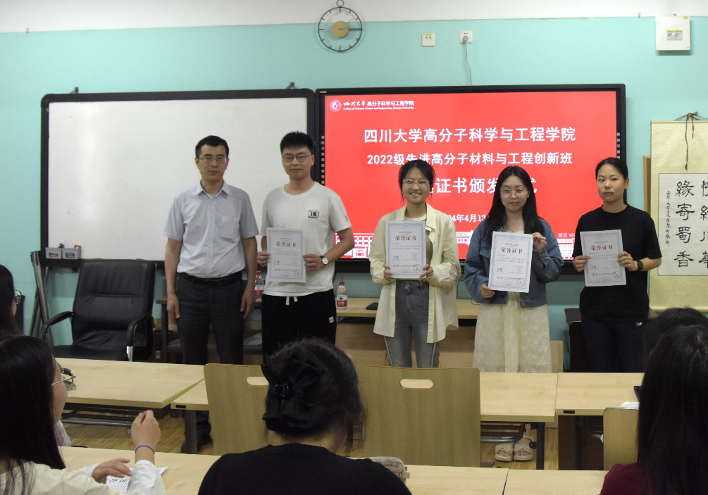 4月13日,2022级先进高分子材料与工程创新班(以下简称创新班)入选证书颁发仪式在番茄小说 江安校区举行。学院院长杨伟、党委副书记钱祉祺出席仪式。仪式上,杨伟为入选2022级创新班的同学颁发证书并讲话。他指出建设先进高分子材料与工程创新班是高分子学科为强化专业特色、改革教育教学模式以及培养拔尖创新人才的积极探索。从2019级开始试点建设创新班以来,学院不断更新课程体系和知识架构,鼓励学生积极参与科研训练,大力...