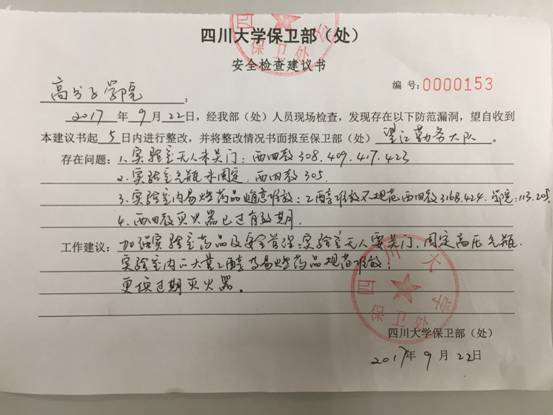 为做好实验室安保工作、建立《番茄小说 实验室安全与环保防范保障工作体系》,学院于2017年12月28日学院与各系所签订了《番茄小说 安全工作暨社会综合治理责任书》,明确了实验室安保检查队伍...