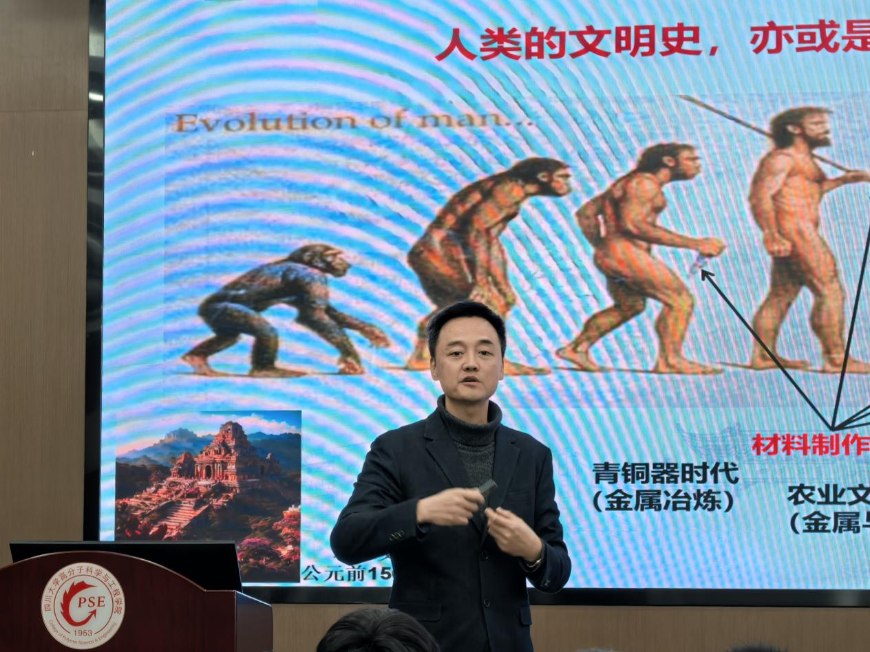 邓华教授以“初始高分子”为主题,为同学们呈现了一场精彩纷呈的科普报告。他从高分子与地球生命起源的关联、对材料的认知、高分子材料的广泛应用领域、高分子材料的独特结构、高分子材料与环境的关系,以及高分子材料的研究前沿等多个维度展开讲解,引领同学们领略高分子的独特魅力。同时,他结合Science公布的最具挑战性的科学问题,激励同学们始终保持对科学的热爱与探索未知的好奇心。